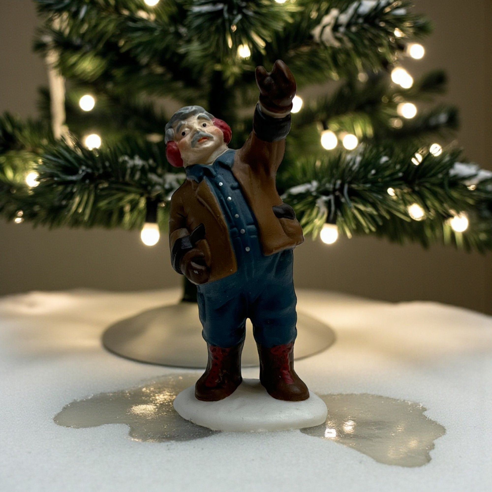 Department 56 Town Tree Trimmers, Christmas In The City loose figurine from 1993. Very beautiful hand-painted porcelain figurine. Man reaching up to help string the lights. Loose figurine only - This is not the complete set and includes only 1 figurine from the set. No box is included, only the figurine.