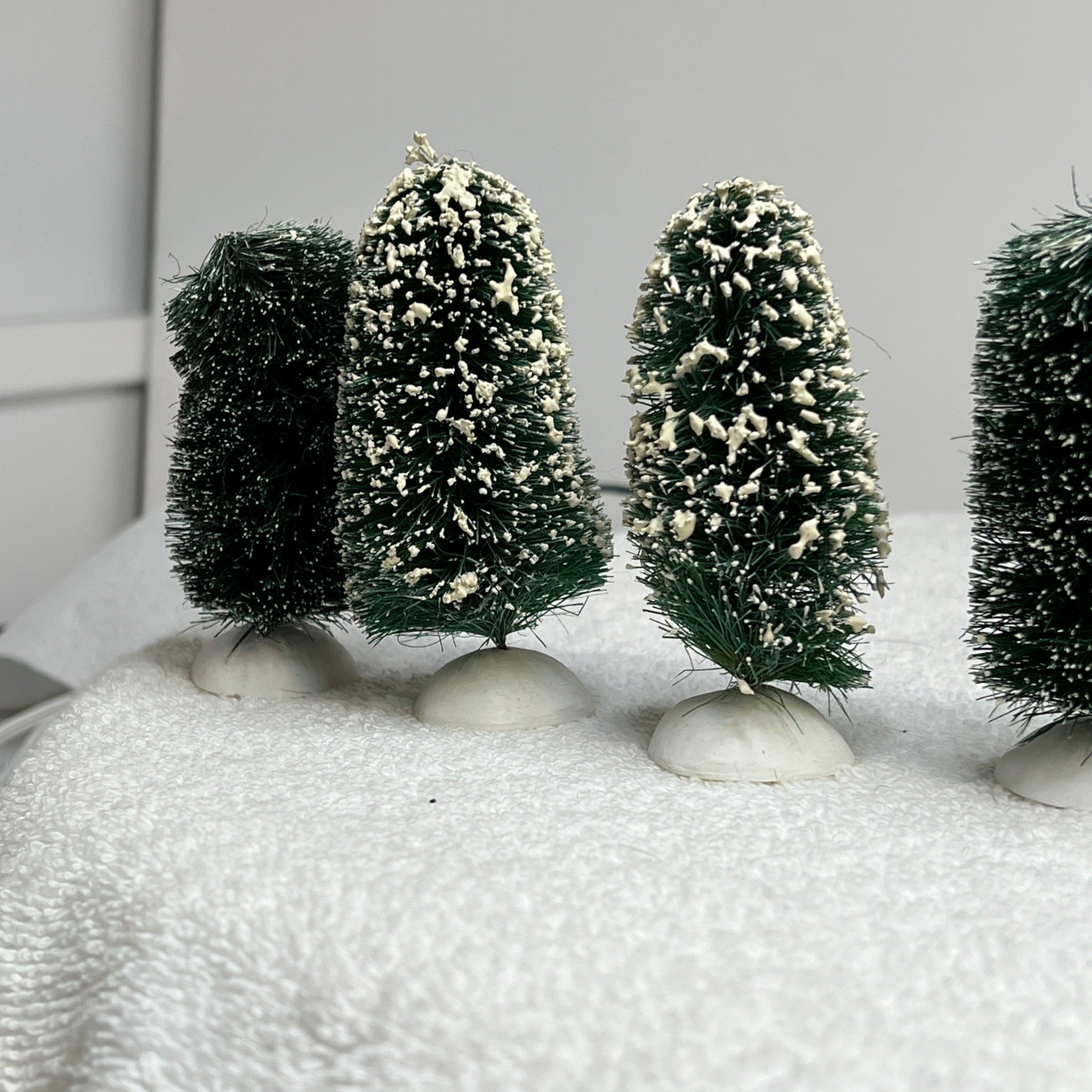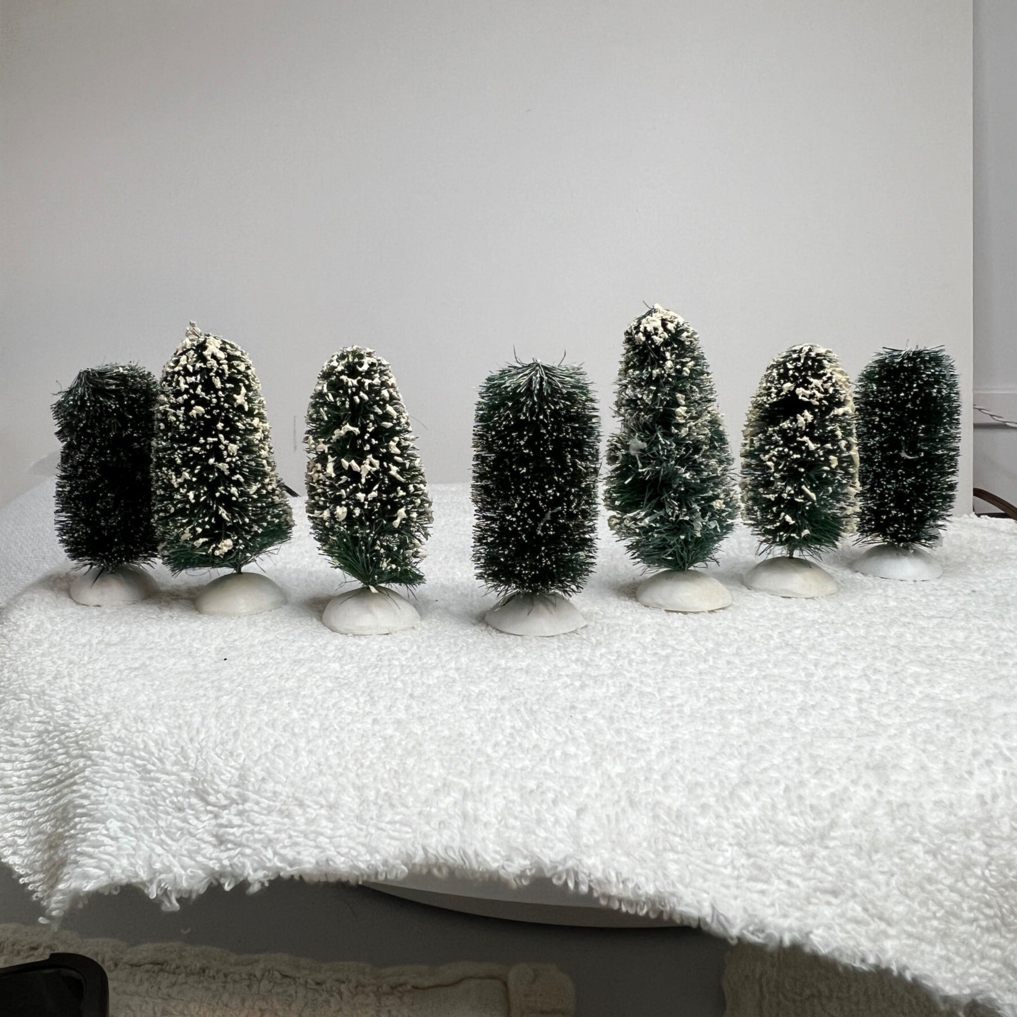 Minor wear on box and this set includes 7 trees and not eight as shown on the box, trees in excellent condition. Each tree approx. 5 inches tall.