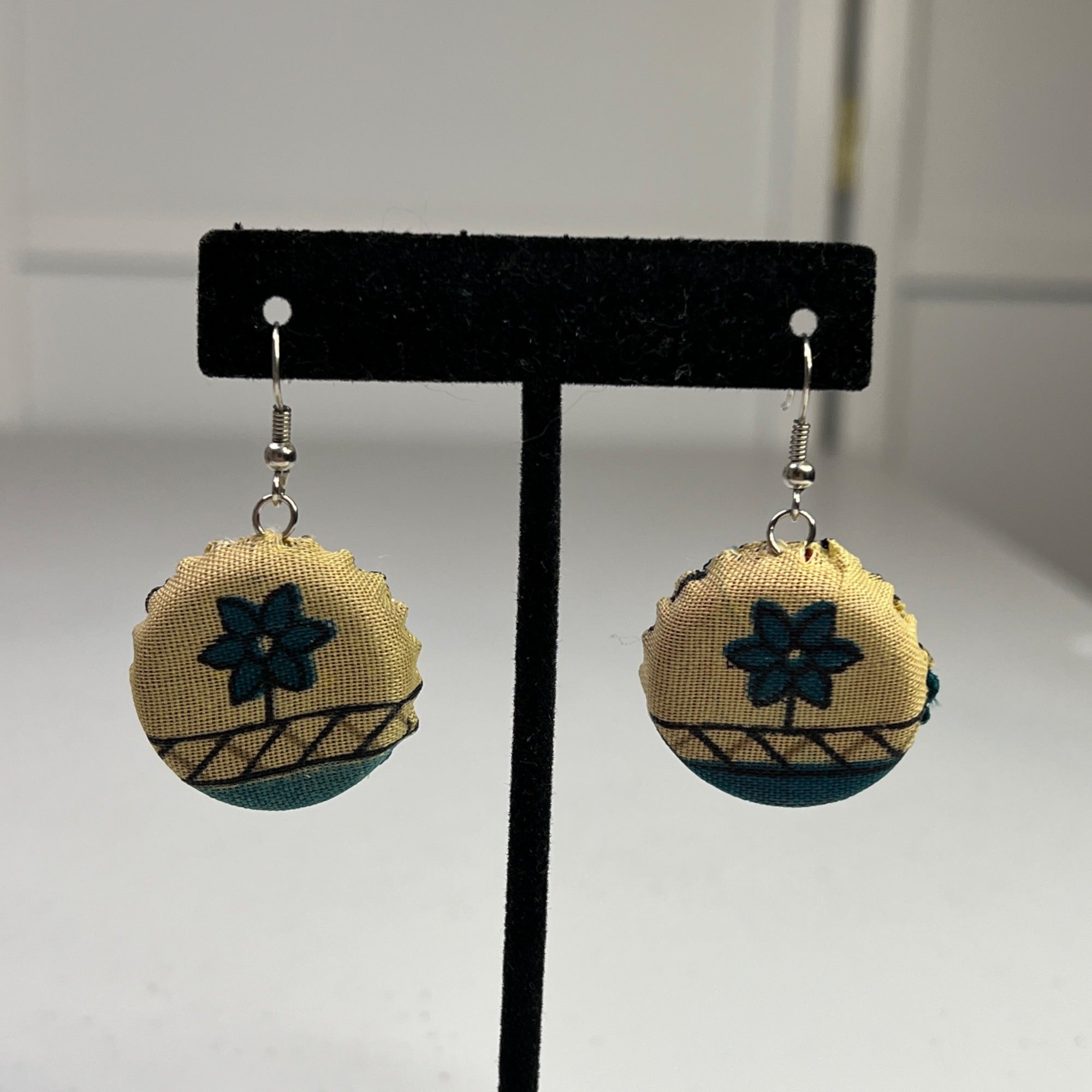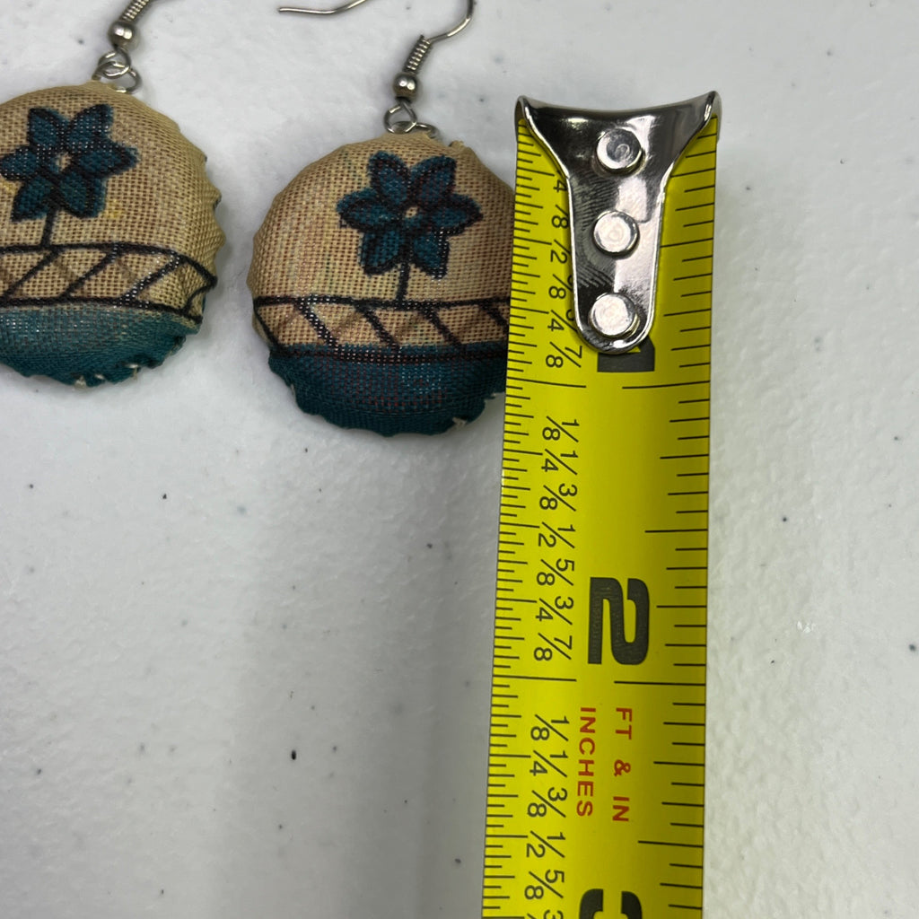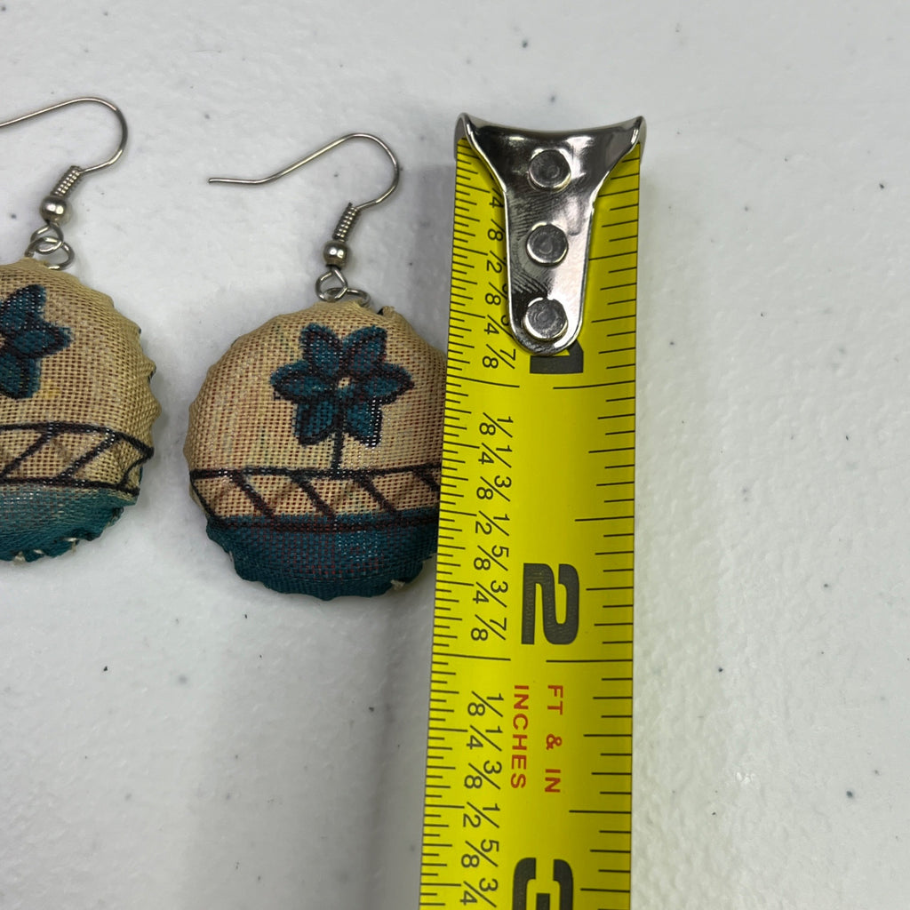 These pre-owned earrings feature a lightweight, handcrafted design with a unique floral pattern on fabric. Perfect for adding a subtle touch of elegance to your outfit.