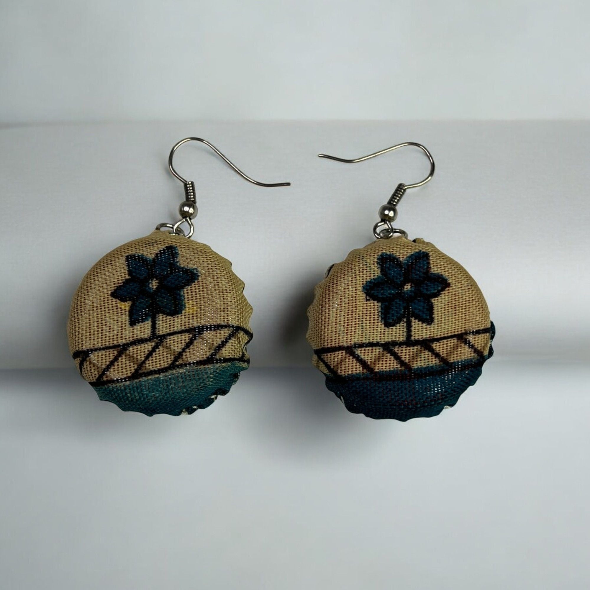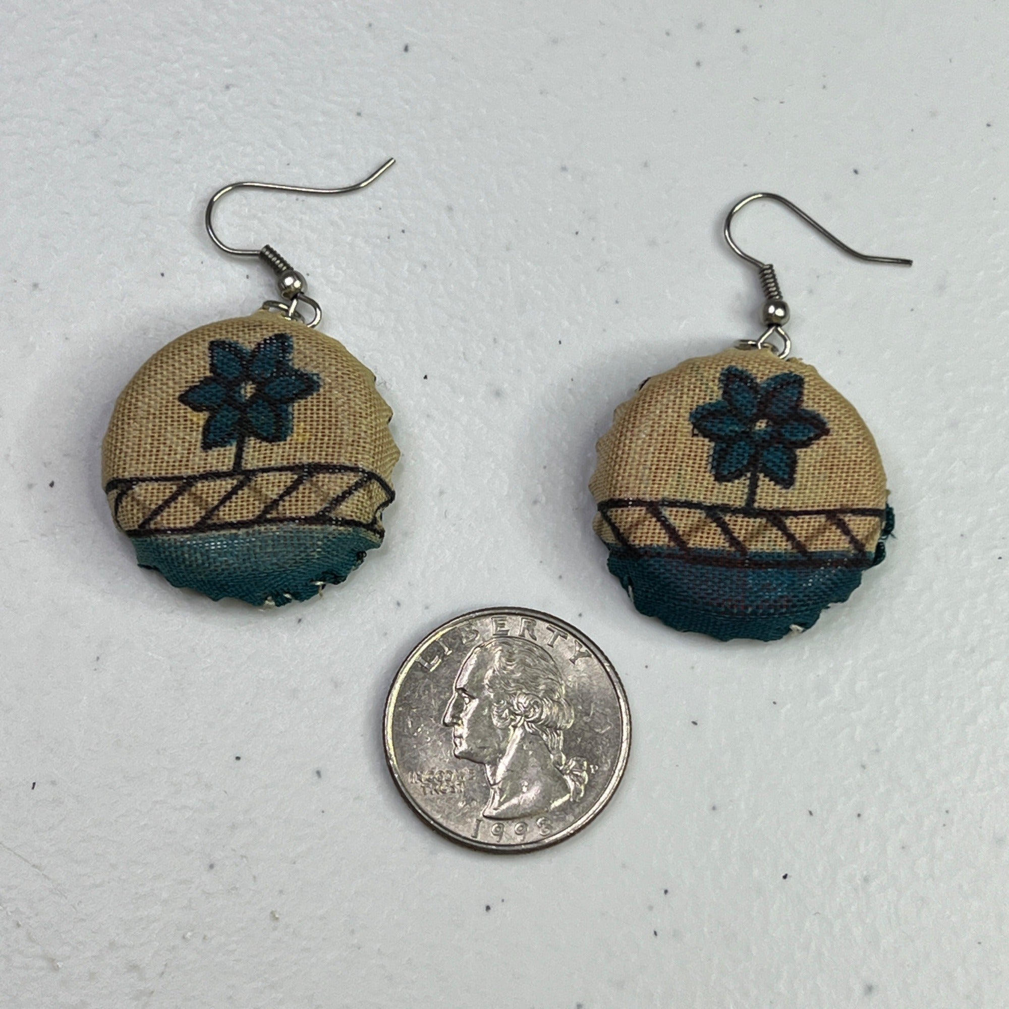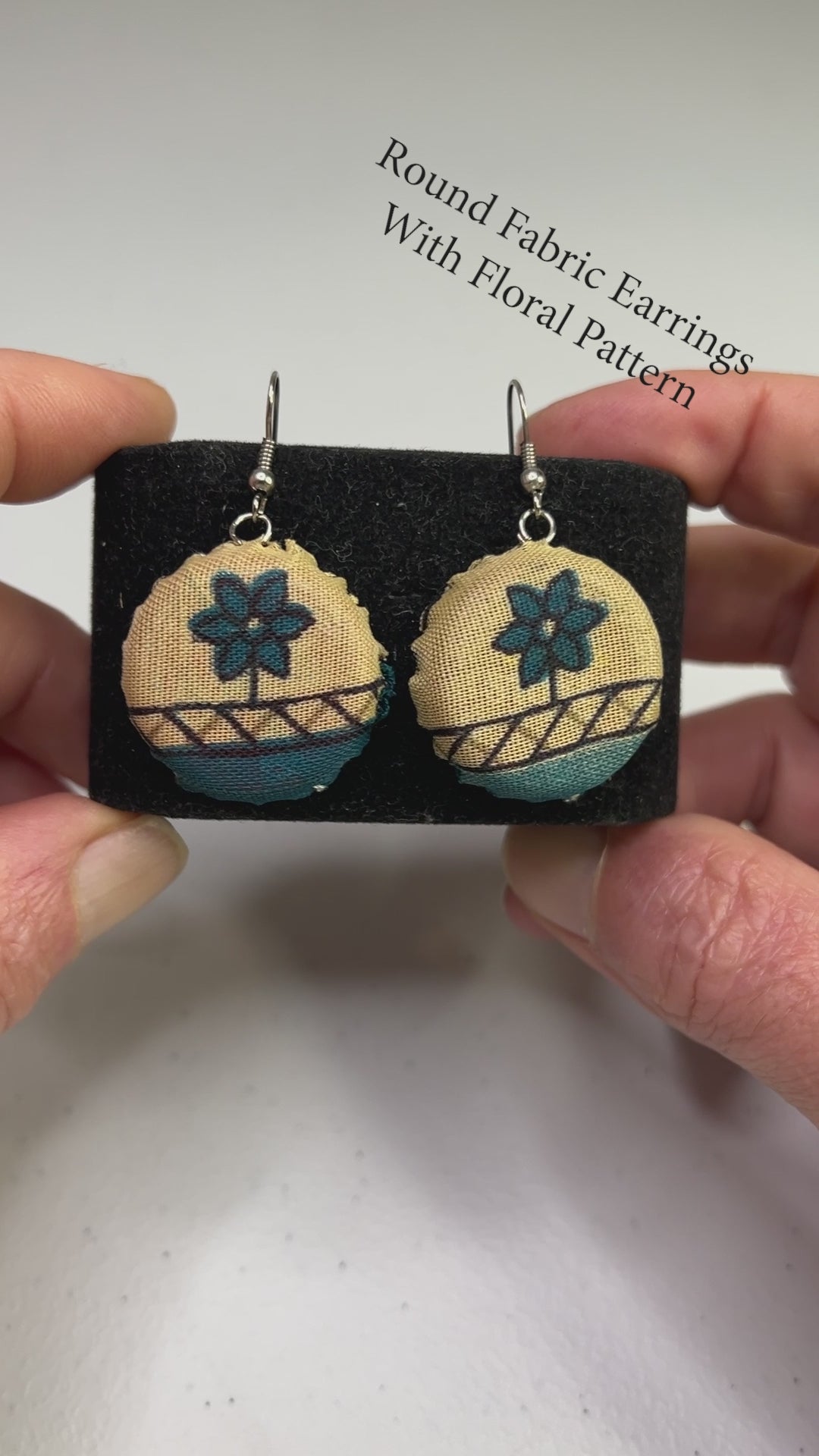 These pre-owned earrings feature a lightweight, handcrafted design with a unique floral pattern on fabric. Perfect for adding a subtle touch of elegance to your outfit.