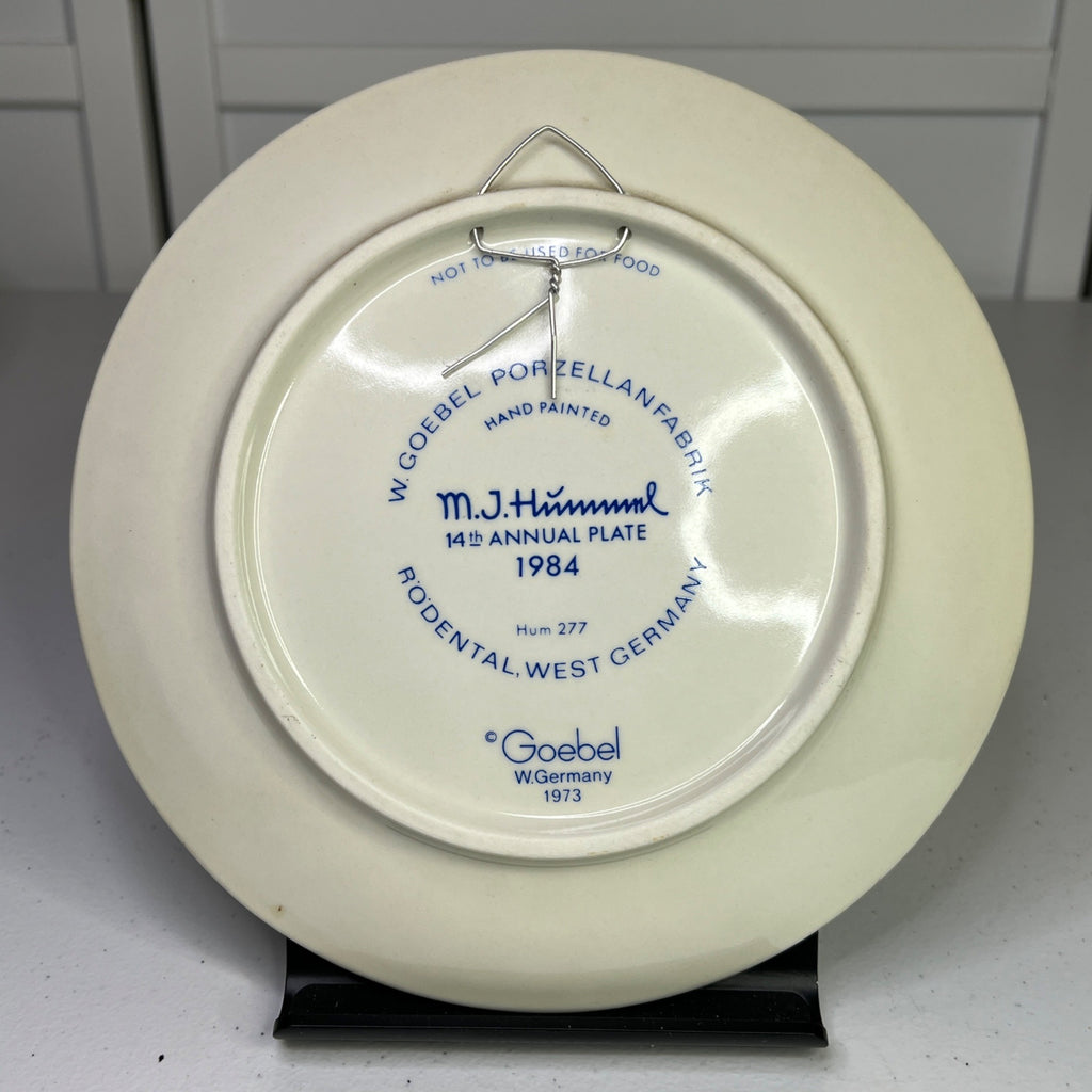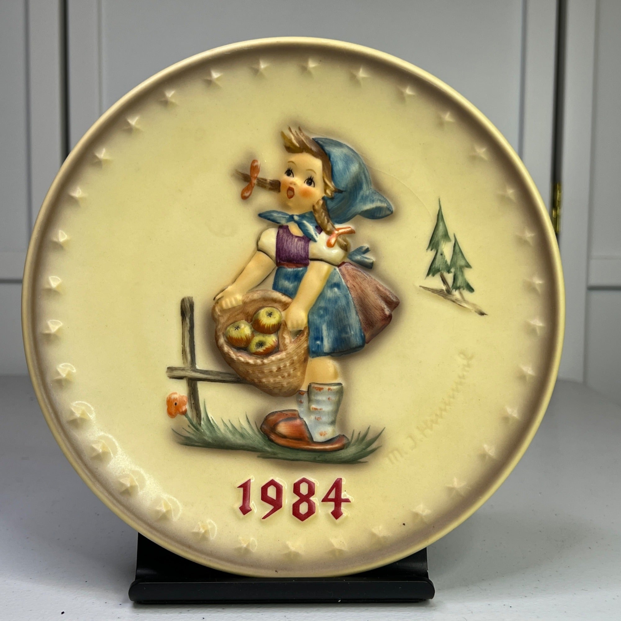 This 1984 M.J. Hummel "Little Helper" annual plate is a hand-painted, limited edition collectible by Goebel, made in West Germany.