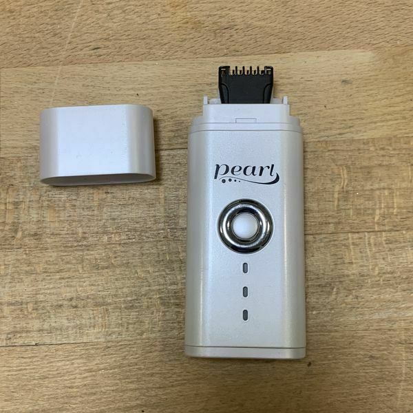 Pearl Hair Removal System, base unit only, no accessories or charger, unit activates when moving across skin, still has a charge so it can be used right away but a AC adapter will be need to recharge it.