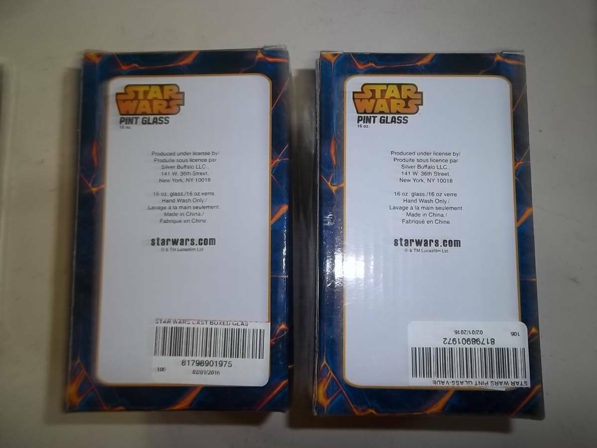 2 Star Wars pint glasses still in the boxes. Very nice collectors items.