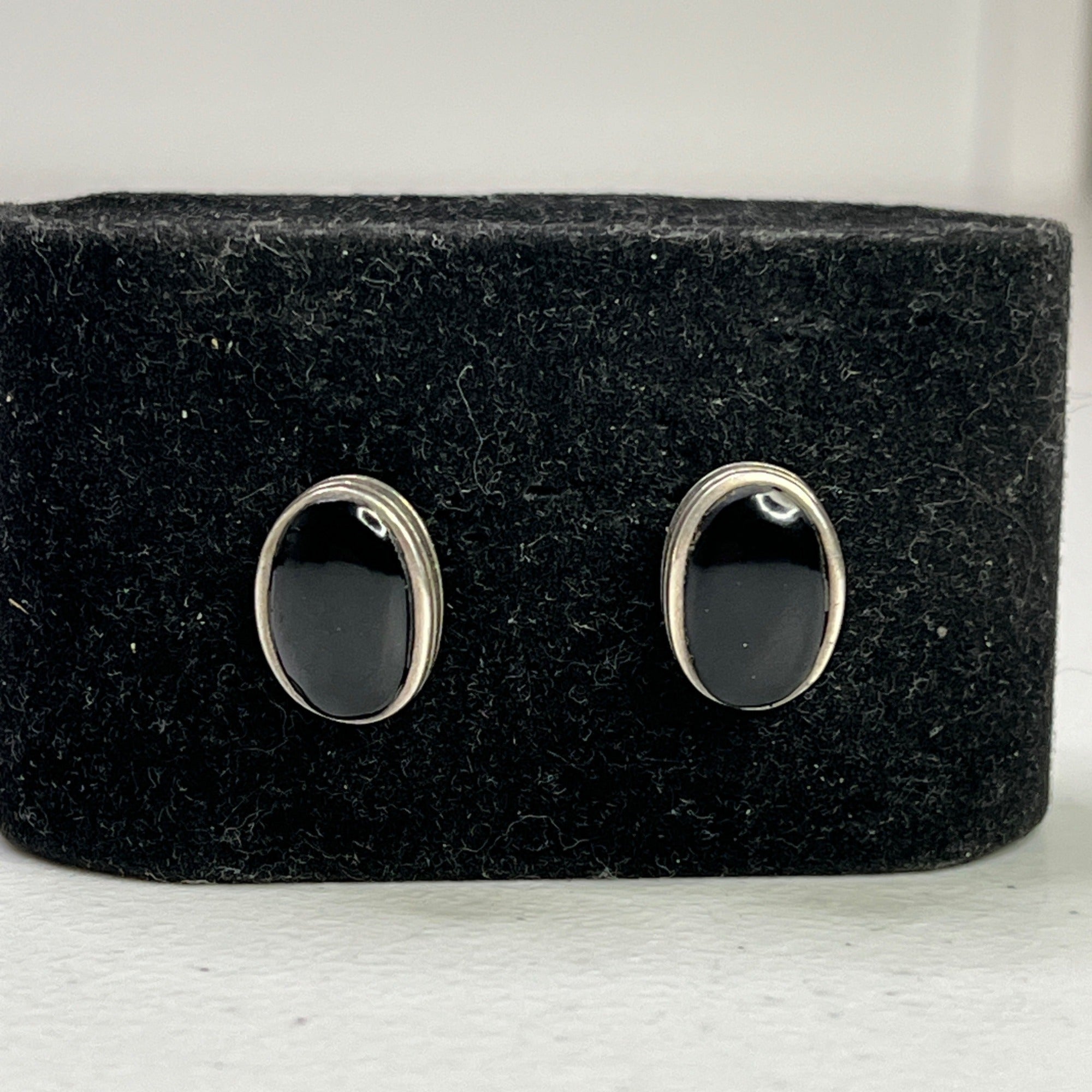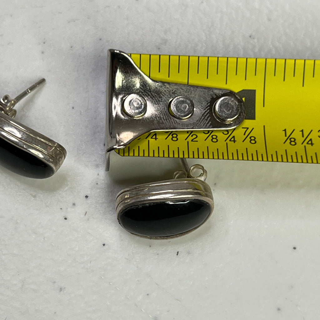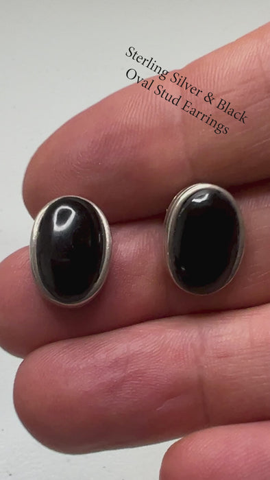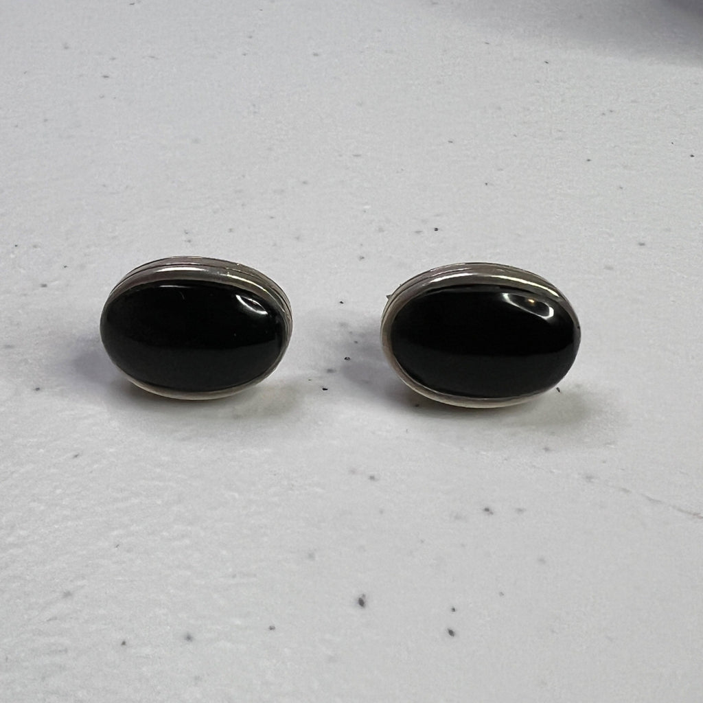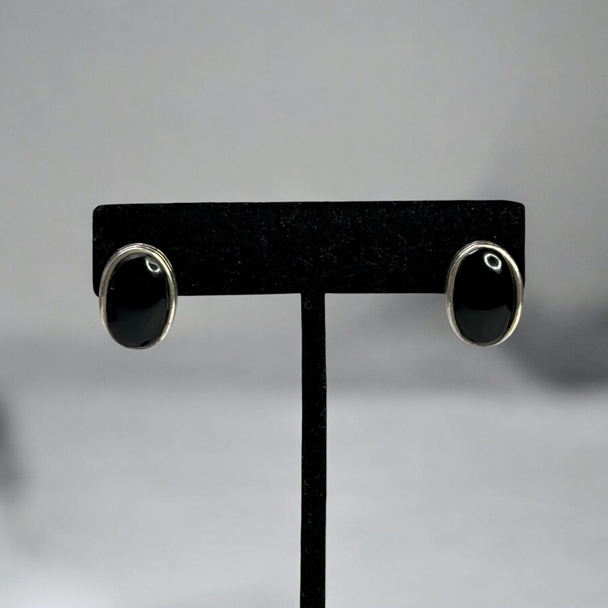Elegant sterling silver and black earrings with a timeless black oval design. Ideal for adding sophistication to both professional and casual attire.