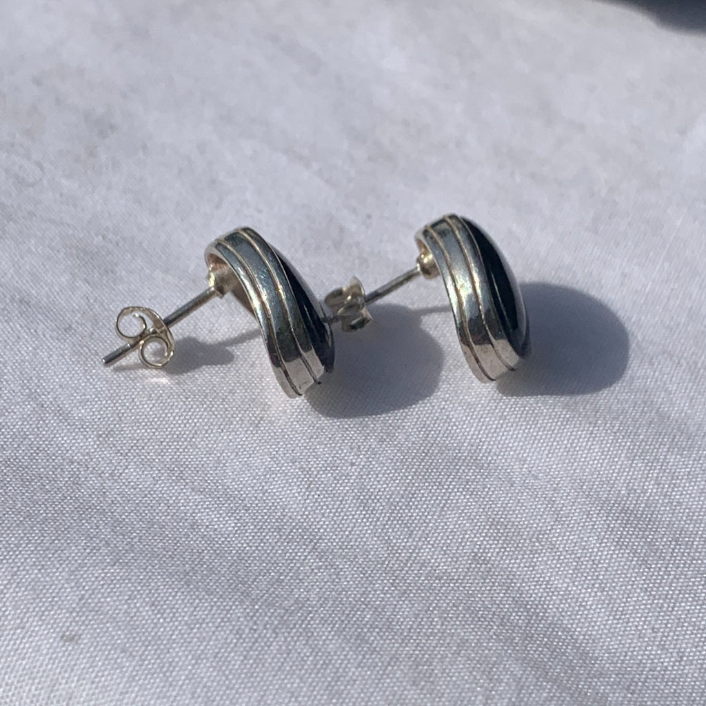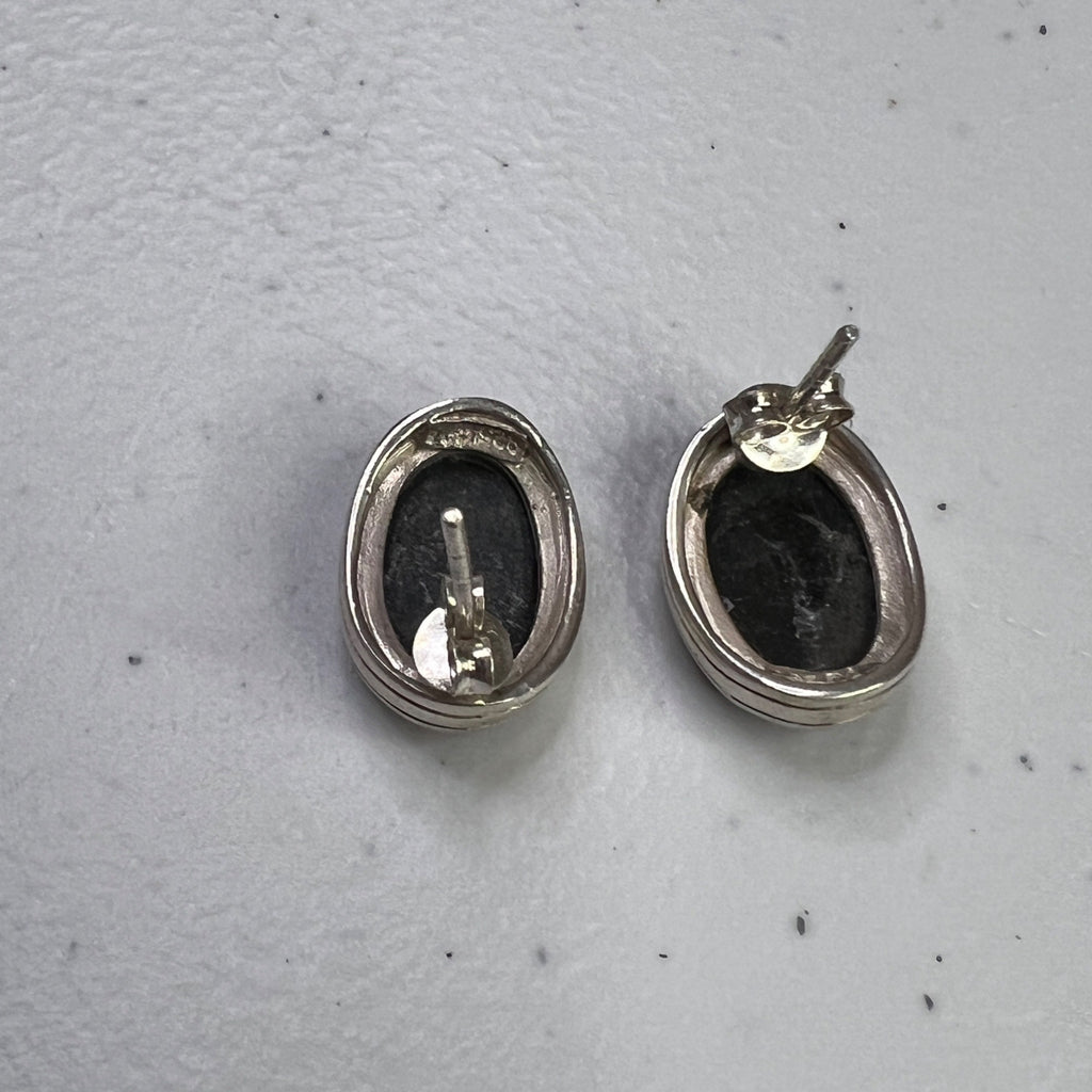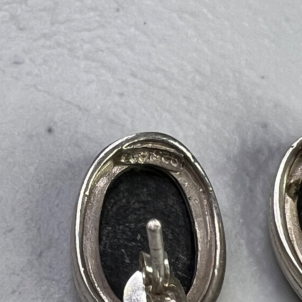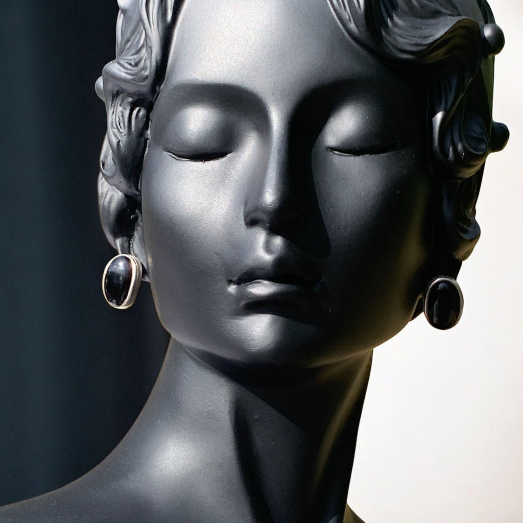 Elegant sterling silver and black earrings with a timeless black oval design. Ideal for adding sophistication to both professional and casual attire.